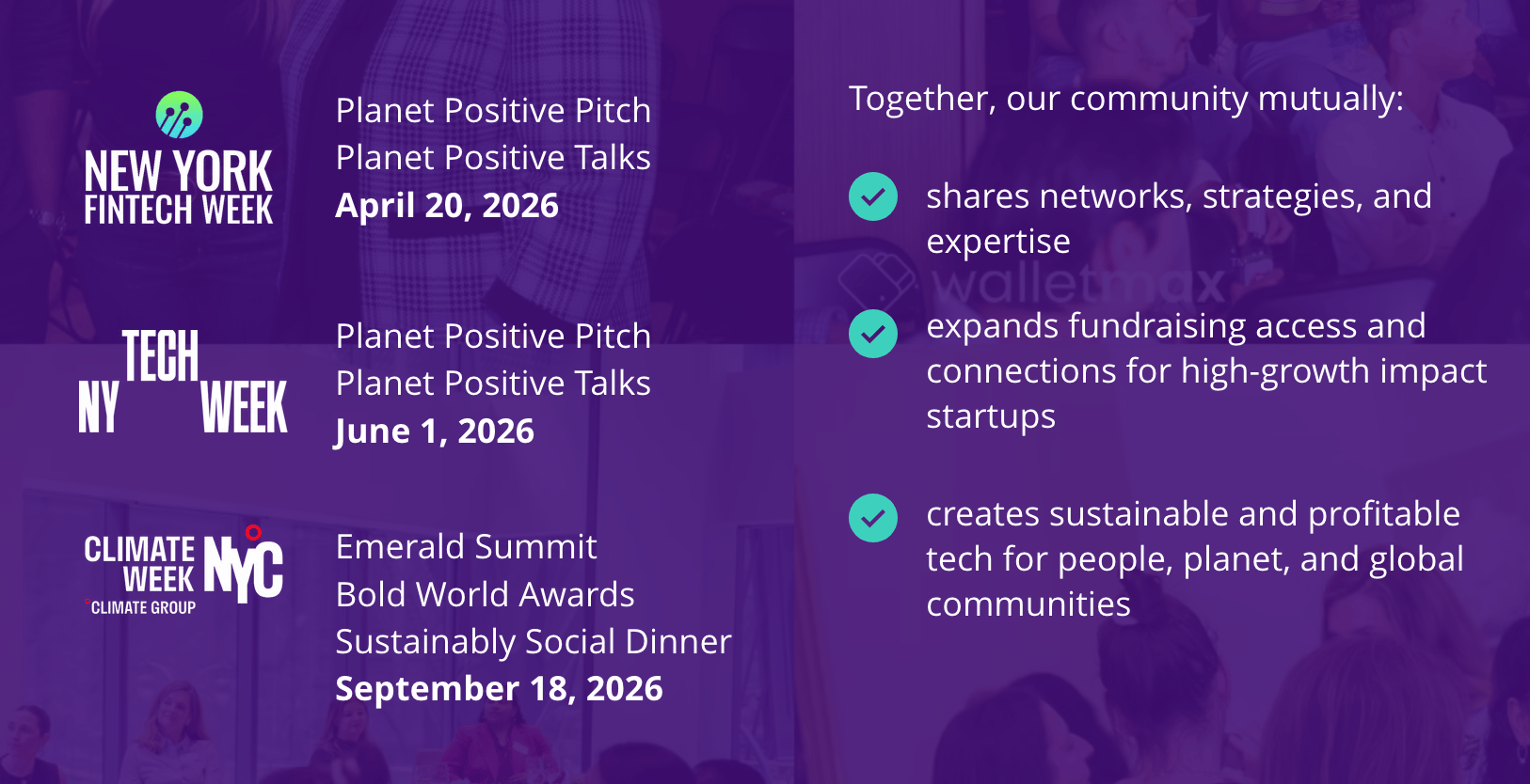 Welcome to the latest Wallet Max newsletter! We’re grateful for your support and excited to announce our new Planet Positive Hub Memberships, giving you exclusive access to a large community of 2,000+ professionals and discounts to numerous 2025-2026 events to help you thrive in your business and career.